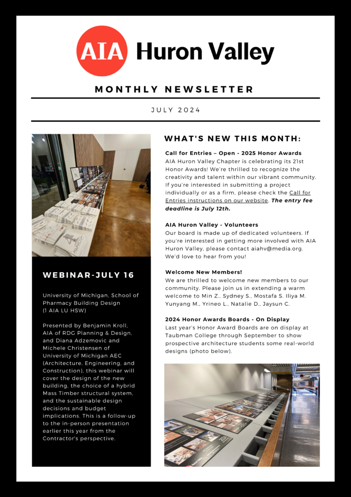 July 13, 2025Call for Submissions: https://aiahv.org/the-concept-sketch/ Call for Entries – 2026 AIA Huron Valley AWARDS: https://aiahv.org/call-for-entries/